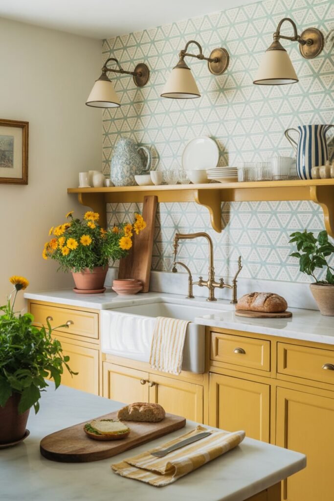 Okay, so this kitchen clearly drinks iced lattes and listens to indie playlists—and we’re obsessed with its energy. The mustard-yellow cabinetry instantly boosts mood, while the geometric backsplash adds modern flair without feeling cold.