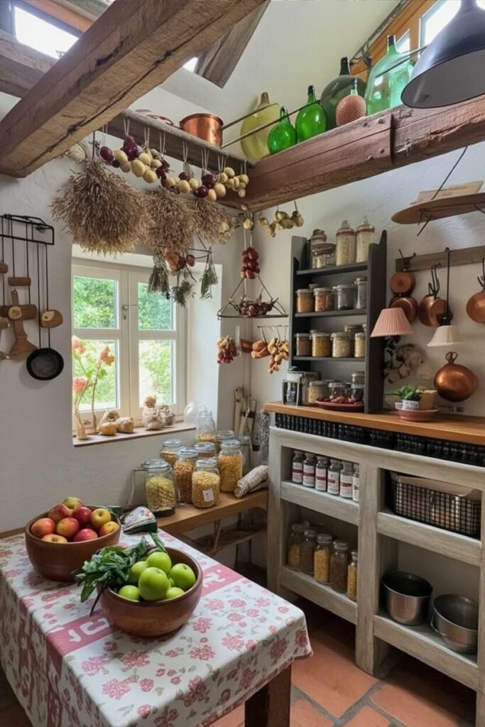 To recreate this look, start with a neutral base—cream cabinets, white walls—and let seasonal accents like pumpkins or wreaths bring color. And please, don’t overdo it. Rustic doesn’t mean clutter. It’s about warmth, not chaos. Style tip: Add symmetry through pendant lighting or matching décor pieces to balance that charming “organized mess.”