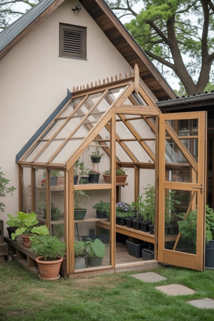 If you think a greenhouse needs to be a big, complex structure, think again! We just adore the simple elegance of a lean-to greenhouse like the one pictured. This design is our go-to recommendation for anyone wanting a functional space that feels like a natural part of their home, not an afterthought.