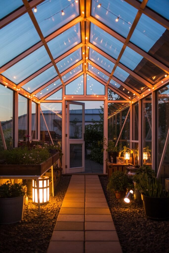 This simple addition makes your greenhouse a beacon of warmth and light, inviting you to enjoy the space well into the evening hours.