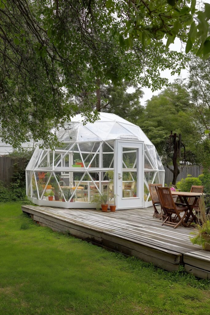 For a greenhouse that’s a true conversation piece, look no further than the striking geodesic dome. We are absolutely mesmerized by these structures! Their unique, geometric design isn’t just for looks; it’s one of the most efficient and sturdy greenhouse shapes available.