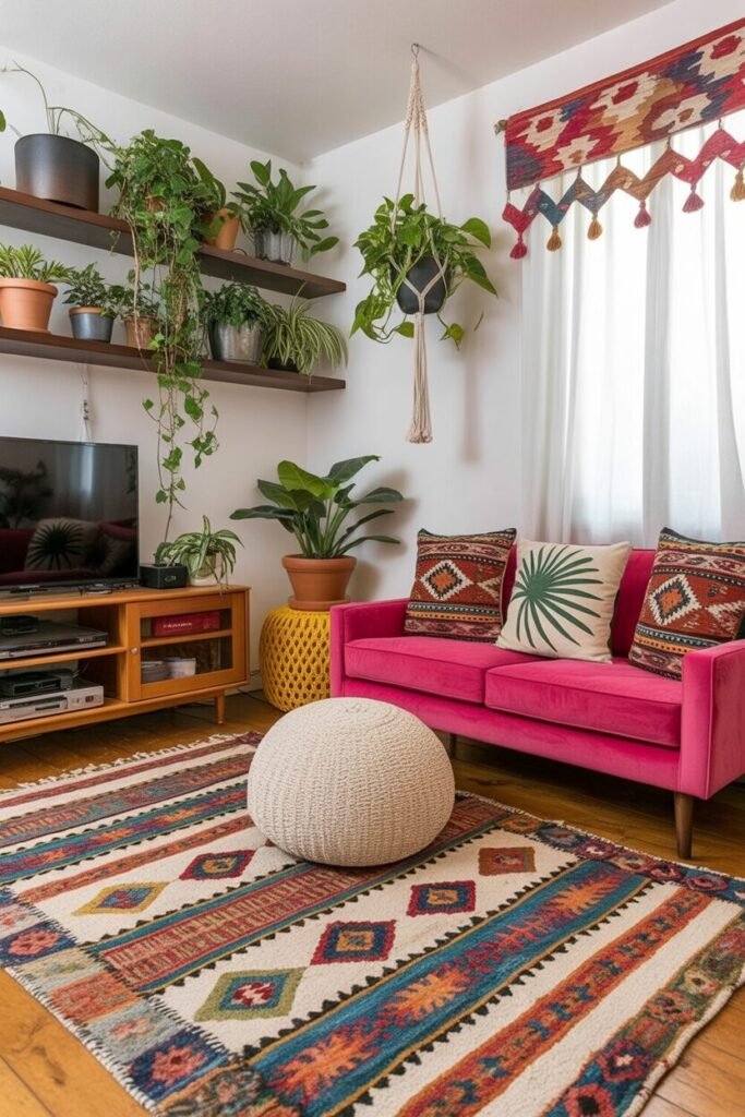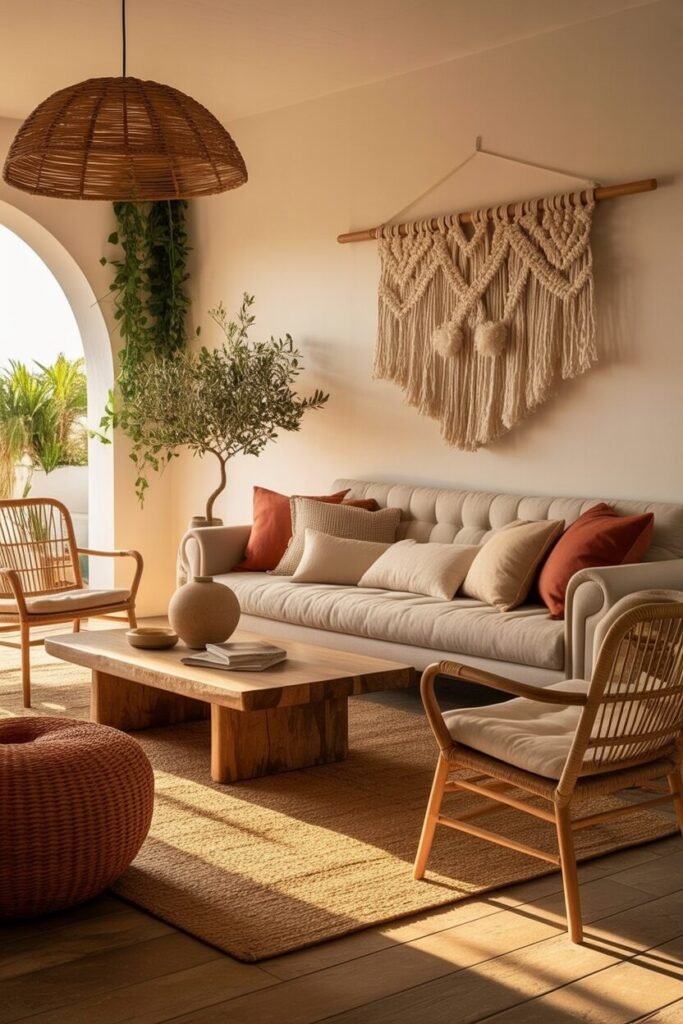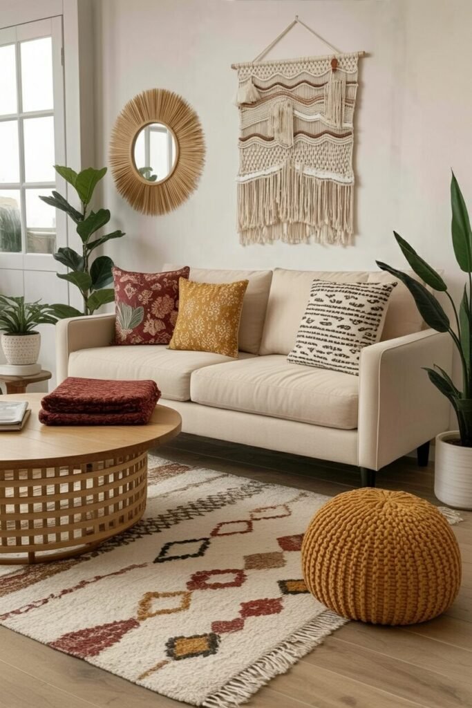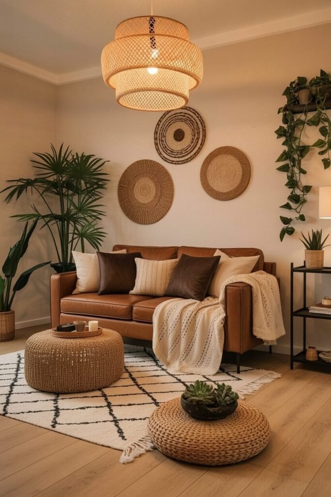 This is a great idea for anyone who wants boho style but still loves a tidy, streamlined aesthetic. It’s cozy, earthy, and quietly luxurious — like someone who drinks oat-milk lattes and always remembers to water their plants.