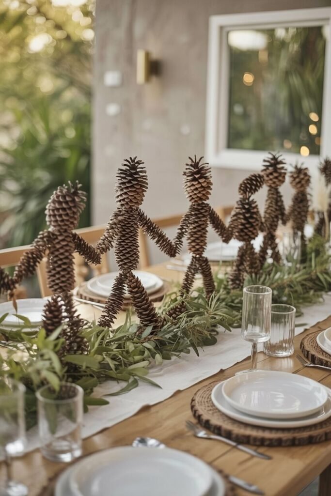 Who needs store-bought décor when nature literally gives you pinecones? This setup is creativity on a budget and a perfect example of using repetition and rhythm in design. Those hand-holding pinecone figures instantly draw attention while keeping things earthy and organic.