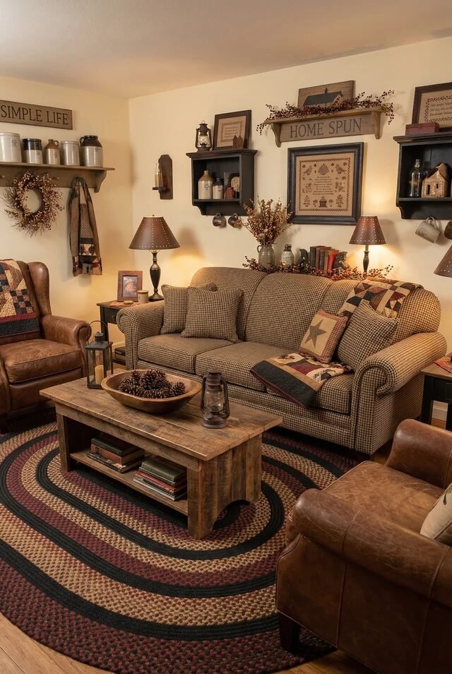 Cozy Americana Primitive Living Room Charm