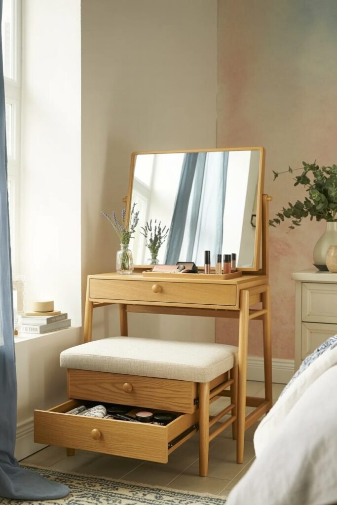 See? A small bedroom doesn’t mean you have to sacrifice style or your precious beauty routine. By choosing the right furniture and thinking creatively about how you use your space, you can create a vanity that’s not just practical but also a beautiful part of your room’s decor.