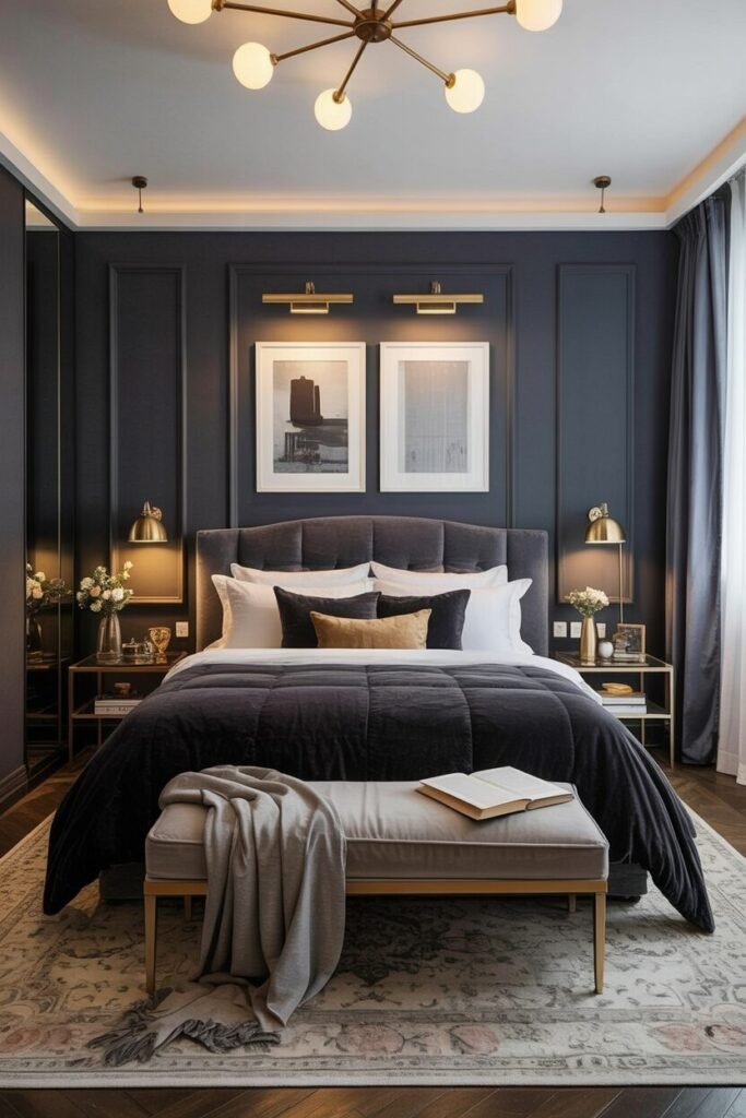 We totally get it—bright and airy is cool and all, but sometimes we just want our bedroom to feel like a luxurious velvet cave of calm. And that’s where dark and moody design slides right in. Think walls the color of a stormy night, bedding in deep navy or mysterious forest green, and dimmable sconces that make us feel like we’re on a secret rendezvous in a five-star speakeasy.
