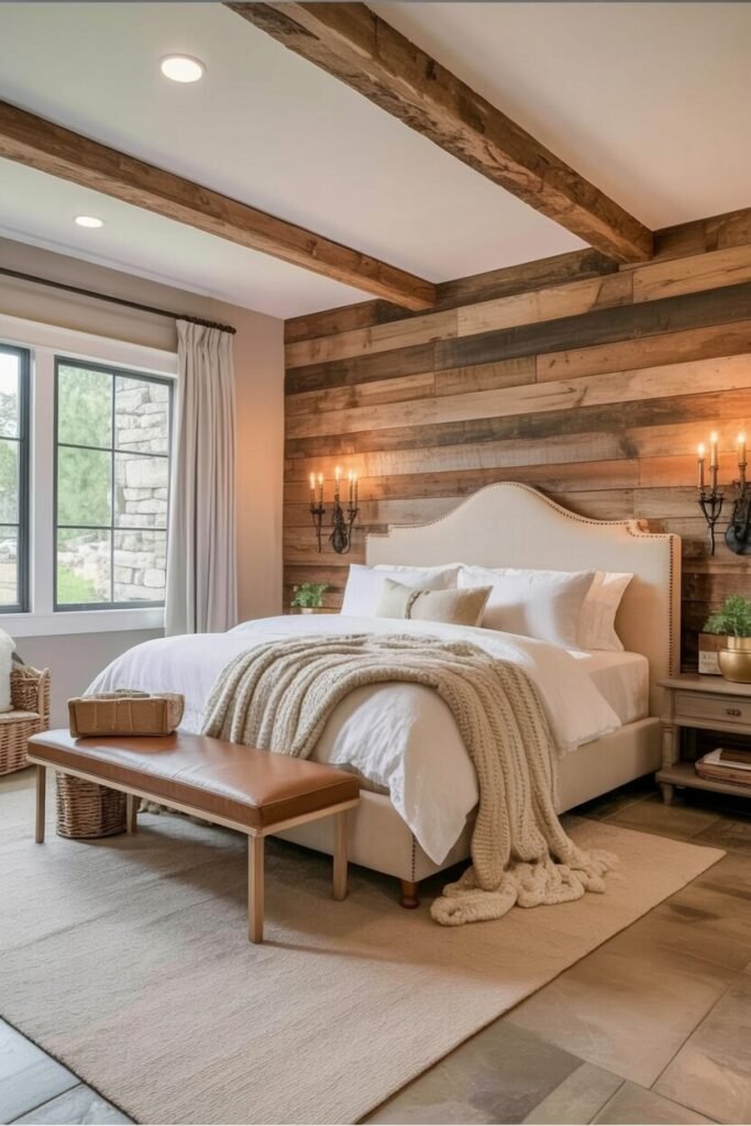 “Rustic” doesn’t have to mean “rough around the edges” or “smells faintly of pine cones.” The rustic luxe look is a delightful dance between weathered charm and boutique-level polish. Imagine reclaimed wood walls, vintage bronze sconces casting a warm glow, and buttery leather accents—then pair them with high-thread-count linen and duvets so cloud-like they might just float away.