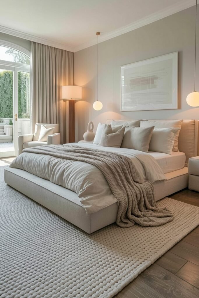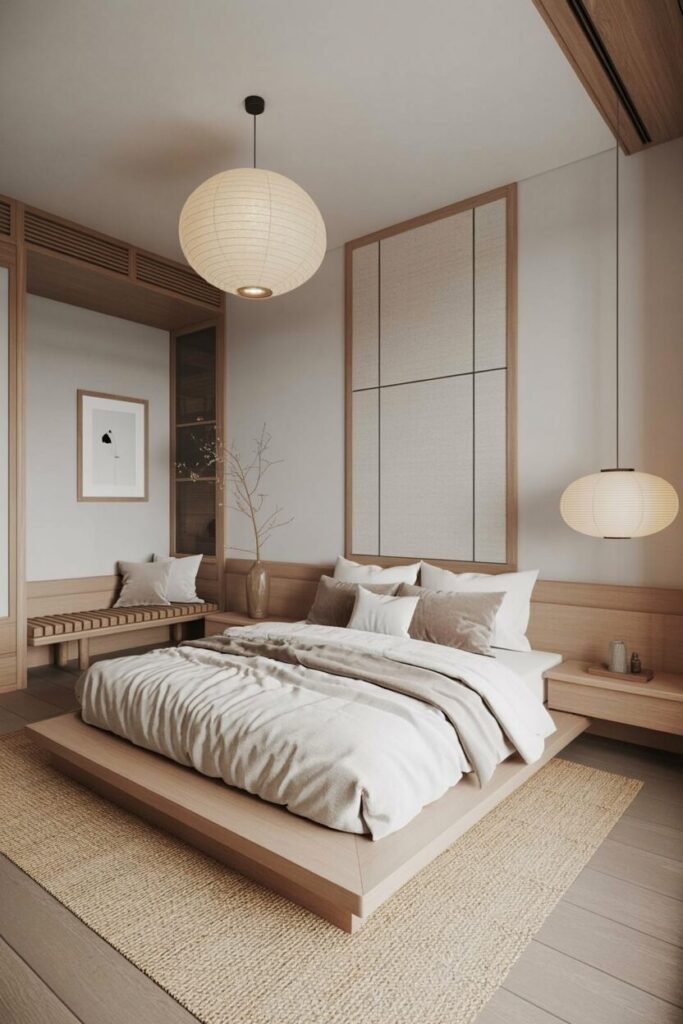 Amp up the texture with a slub linen duvet, a dreamy paper lantern pendant, and a smooth wooden bench. Decor? Minimal, but deeply meaningful—a single ceramic bowl, a graceful branch in a slim vase, one quiet piece of art. No clutter, no chaos—just a space that whispers secrets of serenity, rather than shouting. We’re definitely here for the harmony, not the hype.