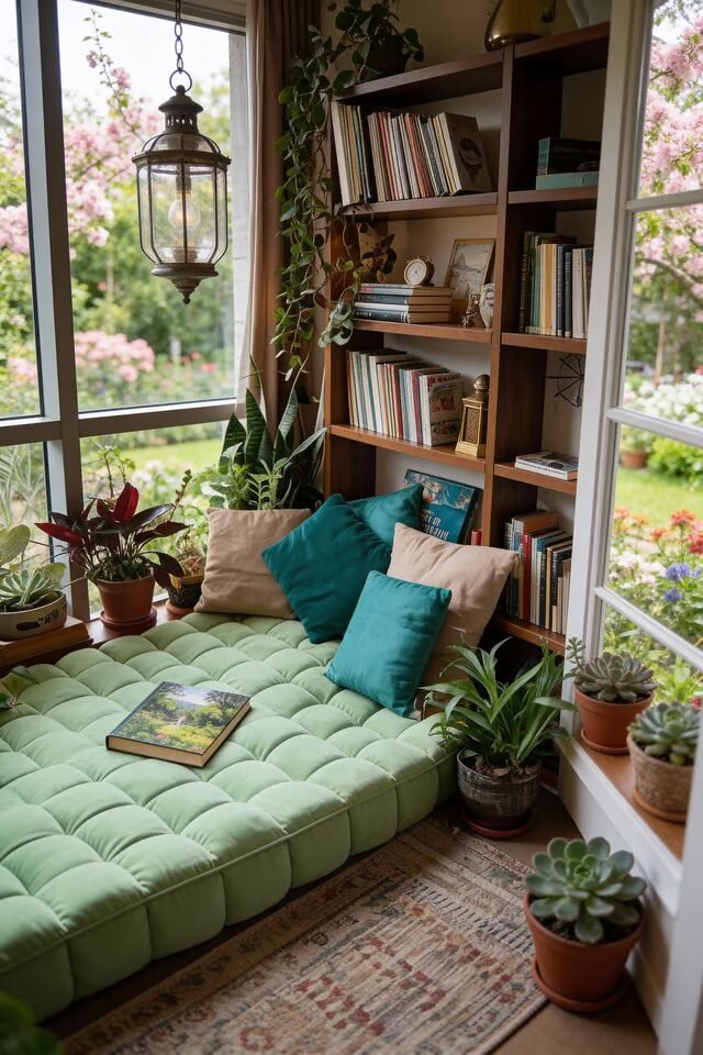 Garden-Facing Reading Nook With Plants