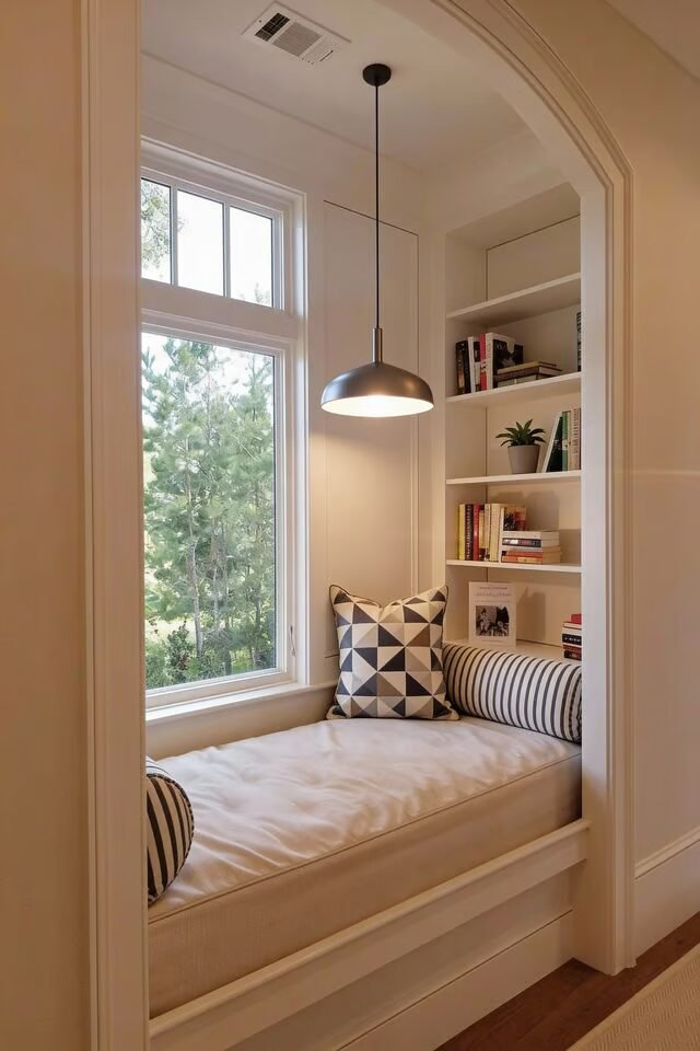 This idea is basically the holy grail of form-meets-function. A window seat reading nook works because it nails three design principles at once: natural light, visual framing, and built-in utility. Natural light reduces eye strain and instantly makes any nook feel more inviting, which is why window placement matters more than fancy furniture here.