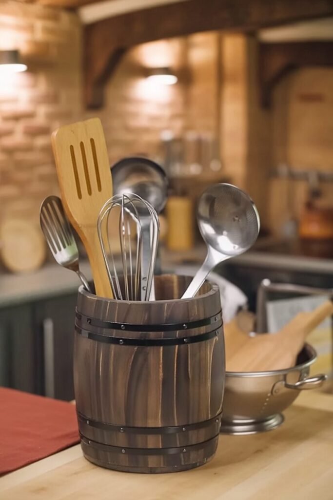Who said kitchen utensils can’t have style? This wine barrel-style utensil crock (a super close match here on Amazon) is a perfect little nod to Tuscan authenticity. It’s rustic, practical, and adds an instant conversation piece — like “Oh this? Just a mini barrel where I keep my spatulas.”