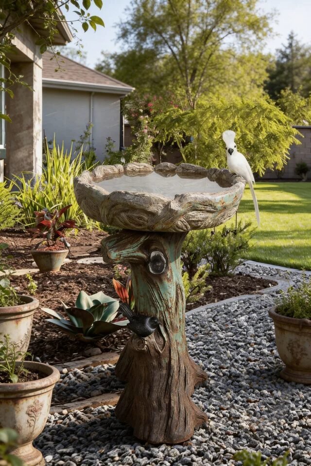 Placement is key. Position the birdbath where pathways intersect or where your eye naturally lands from the house. Gravel or small stones around the base help visually frame it while improving drainage. Hardscape textures like gravel create contrast against soft greenery, which keeps the garden visually balanced.