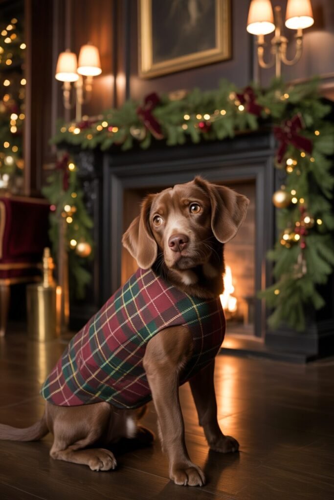Also, the mix of warm lighting and texture contrast — soft fur against polished wood — keeps the atmosphere cozy and photo-ready. We’re obsessed with how plaid adds character without clutter. Pro tip: when styling for the holidays, always include a “soft focus” element like a pet, throw, or candle glow — it gives your decor life and warmth. Plus, let’s be real, dogs in tartan deserve their own Christmas card.