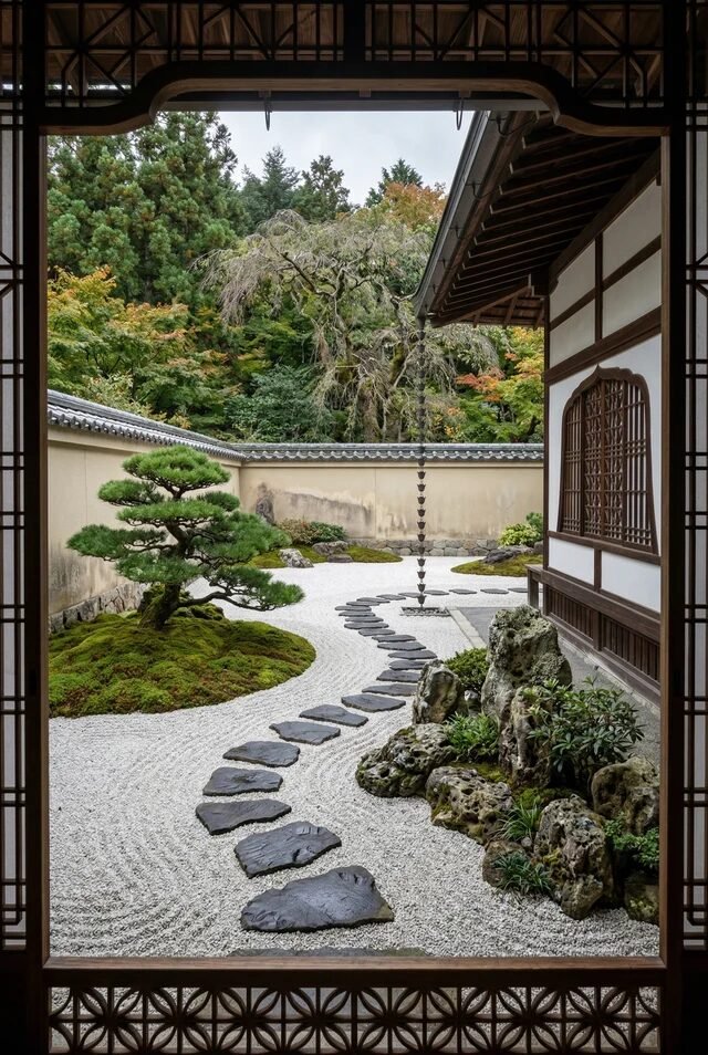 This is for when we want peace, clarity, and zero visual chaos. The design leans heavily on negative space, which is honestly the hardest thing to pull off. Empty space is not wasted space—it’s what makes everything else feel intentional. The raked gravel creates movement, almost like water, while the stepping stones give direction.
