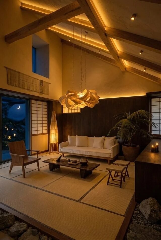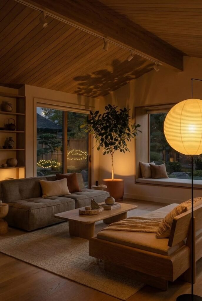 If we’re recreating this, start with a low foundation—floor seating or low sofas. Use natural materials like wood, linen, and paper. Keep your color palette warm and muted. And most importantly, avoid harsh lighting at all costs. If your room feels like a spa you accidentally fell asleep in? Perfect, we nailed it.