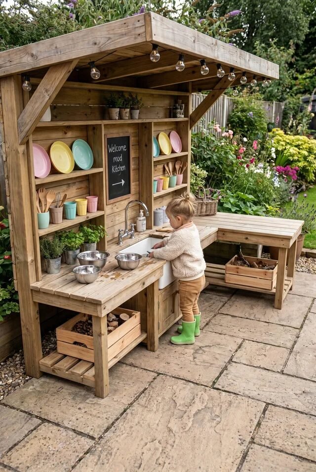 Okay this one? Peak childhood core memory material. A mud kitchen works because it mimics real-life spaces, which kids naturally gravitate toward. Imaginative play thrives when the setup feels familiar but slightly magical. That’s exactly what’s happening here.