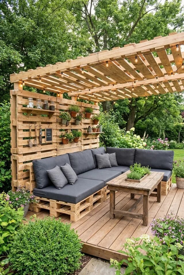 The beauty of pallet projects is that they turn simple materials into surprisingly thoughtful outdoor features. A few stacked boards can become seating, garden structures, planters, or even full entertainment areas. What really makes these projects work is understanding how structure and decor interact outdoors. Wood provides the framework, while cushions, plants, and lighting bring softness and atmosphere.