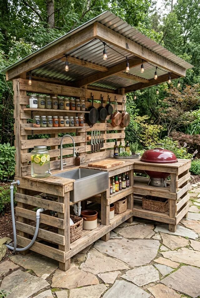 Rustic Pallet Outdoor Kitchen With Smart Storage