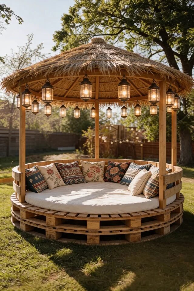 Round Pallet Daybed Gazebo For Relaxed Lounging