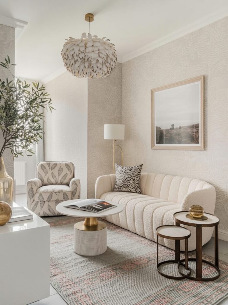 See how those smooth, almost sculptural white vases pop against the subtly textured sofa and rug? That’s the magic of carefully chosen décor!