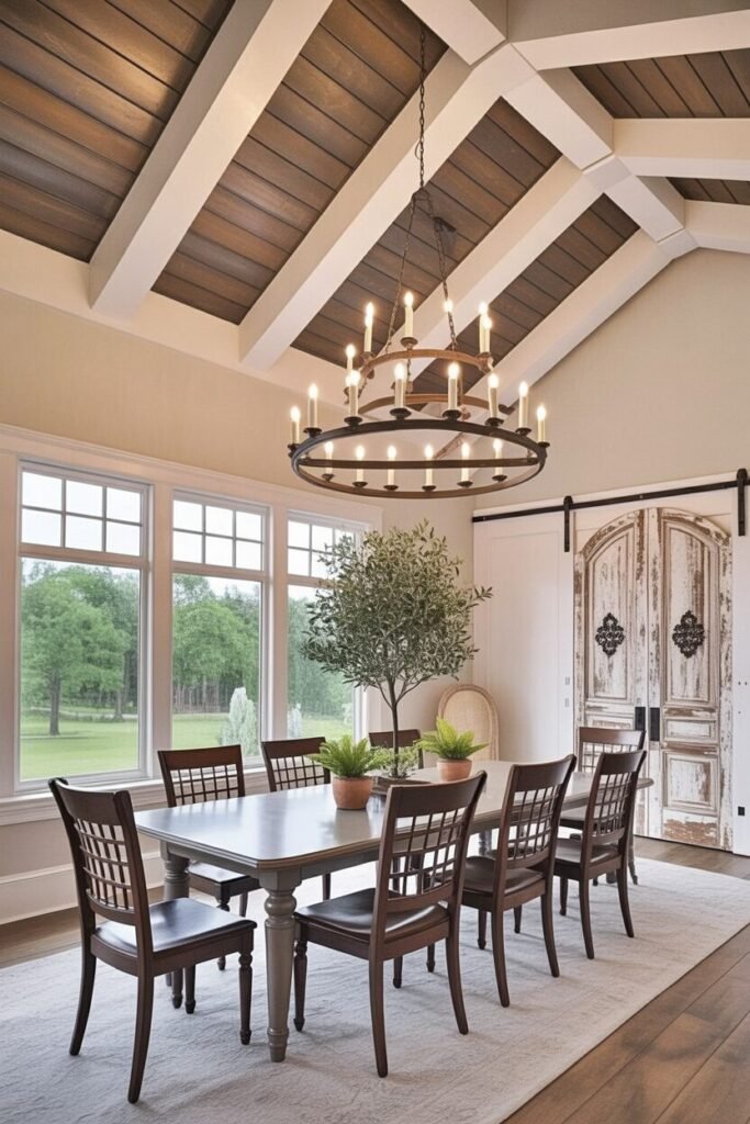 Airy Dining With Vaulted Farmhouse Elegance